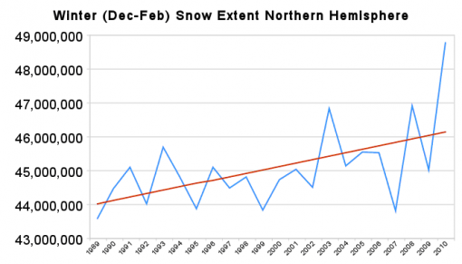 Thing is, he’s cherry picking. He picked only the snow extent in December – February for 1989 – 2010.