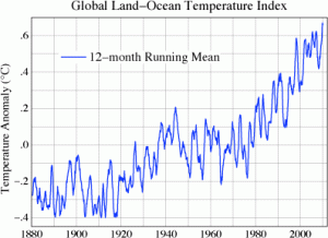Is it caused by man? Yes. Is it 100% caused by man? No. There are other things involved. We are now in the sun spot cycle. We are now in a very hot sun cycle. there are many other things going on. But, yes, a significant portion of this is caused by greenhouse gases keeping heat on the shore, on the land, in the atmosphere that could have escaped without those greenhouse gases, so, yes, it’s warmer. . ..