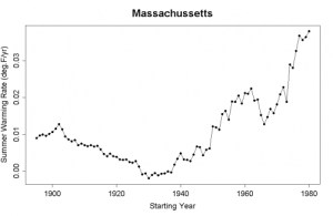 Gee. Using all the data available and calculating the 30 year trend properly seems to show a slightly different result than using 1930 as a starting point…